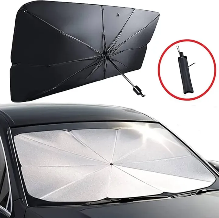 - Protect your vehicle’s interior from harsh sunlight and extreme heat with the Car Umbrella Sun Shade Cover for Windshield. Featuring an innovative umbrella-style design, this sunshade opens and folds in seconds, making it far more convenient than traditional sunshades.