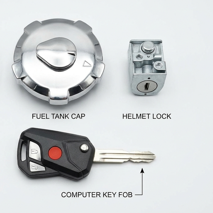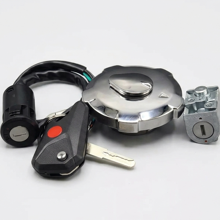 Enhance the security and convenience of your motorcycle with this high-quality 3-in-1 Switch Kit for Honda CG125. This complete lock set includes an ignition switch, fuel tank cap, and side lock, all operated with a single computerized key—making it easier to manage your bike without carrying multiple keys.