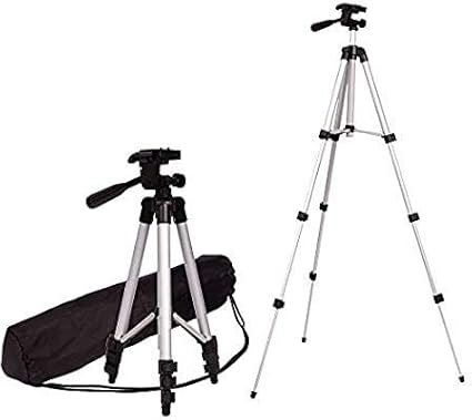 Pack of 03 Adjustable 3.5 Feet Tripod Stands for Mobile Phones & Cameras | Portable DSLR & Vlogging Stand with Holder & Bag (Silver Model 3110)