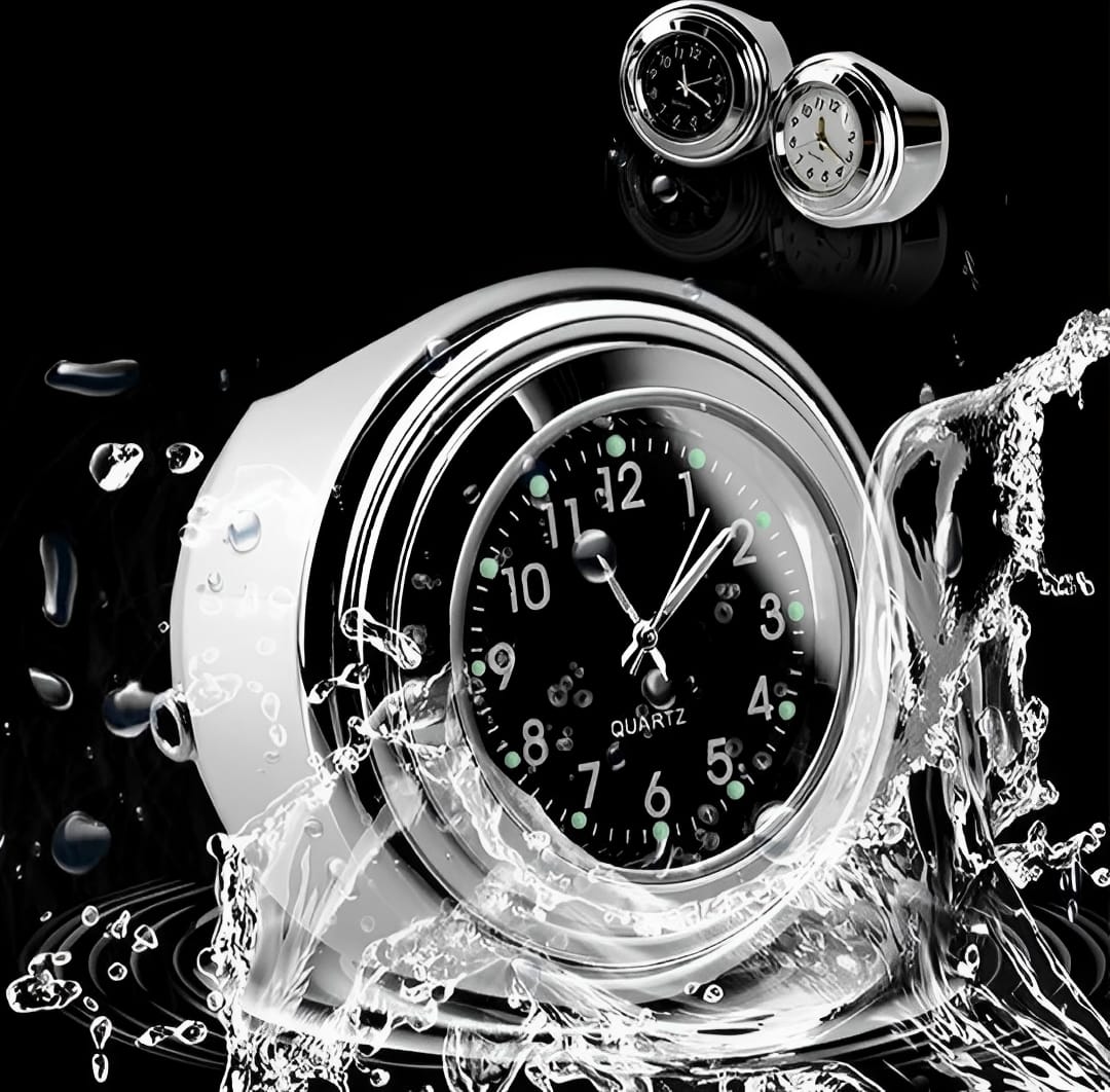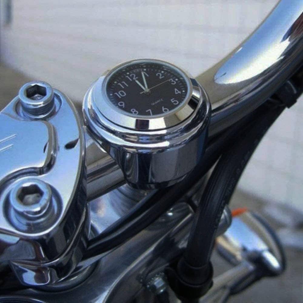 Universal Waterproof Chrome Motorcycle Handlebar Clock – Luminous Quartz Watch for Bikes | Stylish and Durable (Black)