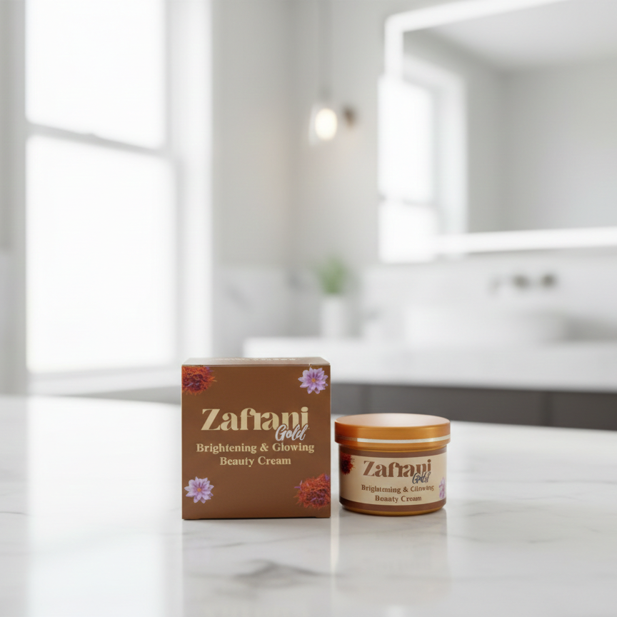 • Unlock luminous, healthy-looking skin with Zafrani Gold Brightening & Glowing Beauty Cream (100g) — a premium skincare solution designed to nourish, hydrate, and brighten your complexion.